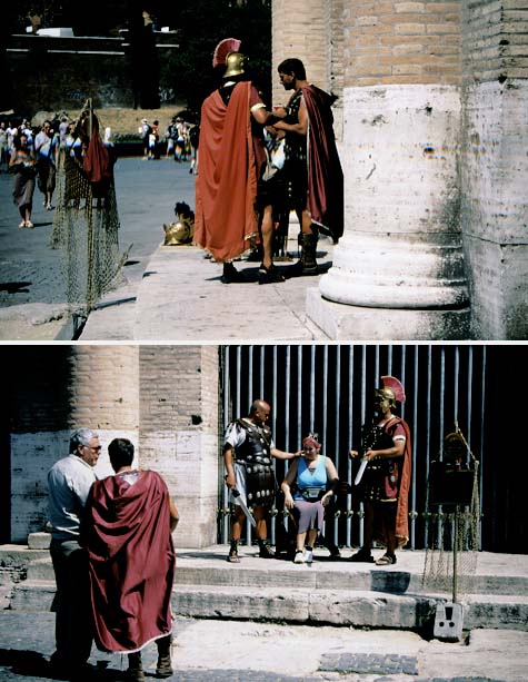 [Images: Tourists having their picture taken “next to somebody dressed up like a gladiator.” Photo by Robin Cormack].