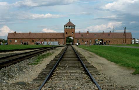 [Image: Tourists visiting Auschwitz-Birkenau; photo via