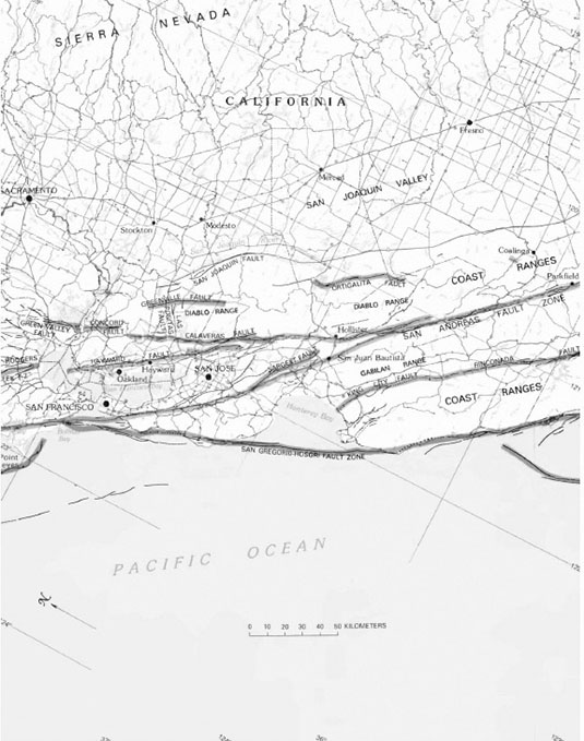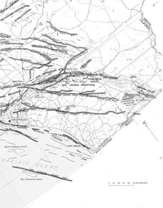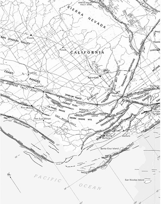 [Image: Map courtesy of the U.S. Geological Survey, from The San Andreas Fault System, U.S.G.S. Professional Paper 1515 (PDF)].