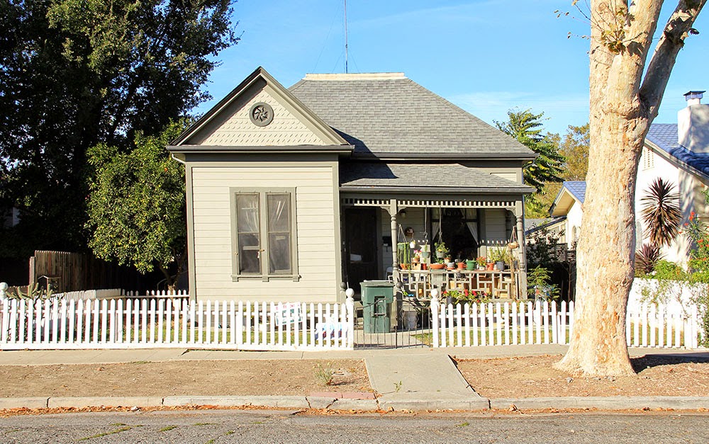 Or walk past the cute Victorian on 5th Street. Strangely askew, it seems frozen at the start of an unexpected metamorphosis.
